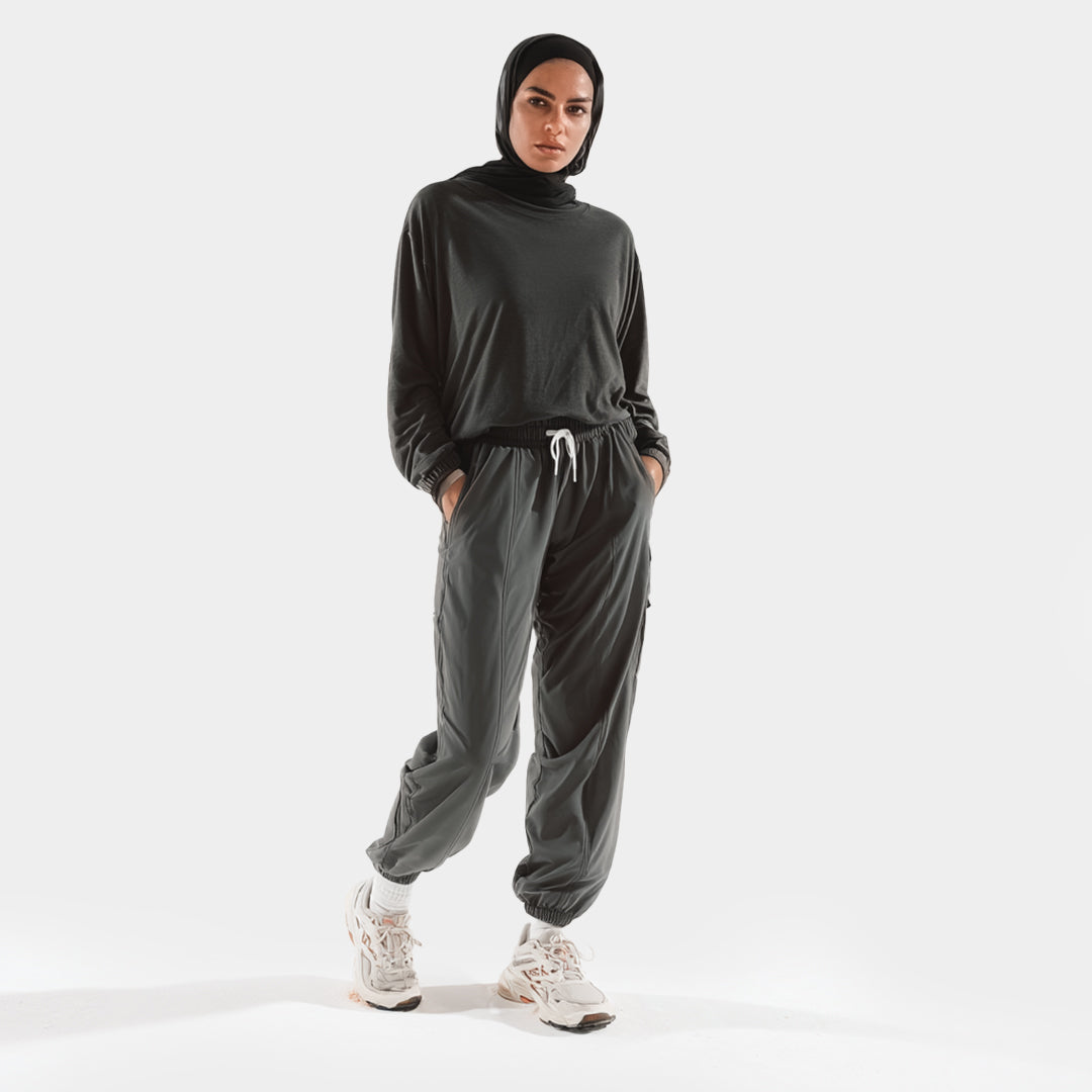 Our tops are designed in sleek, neutral tones (like black) to effortlessly complement your hijab or training joggers or any workout gear you choose to wear, whether you're keeping it minimal or going bold.